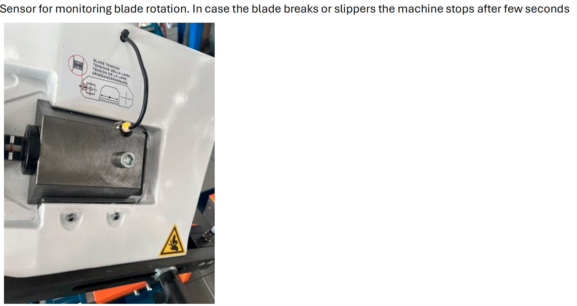 Sensor som overvåker bladrotasjon – stopper maskinen ved bladbrudd