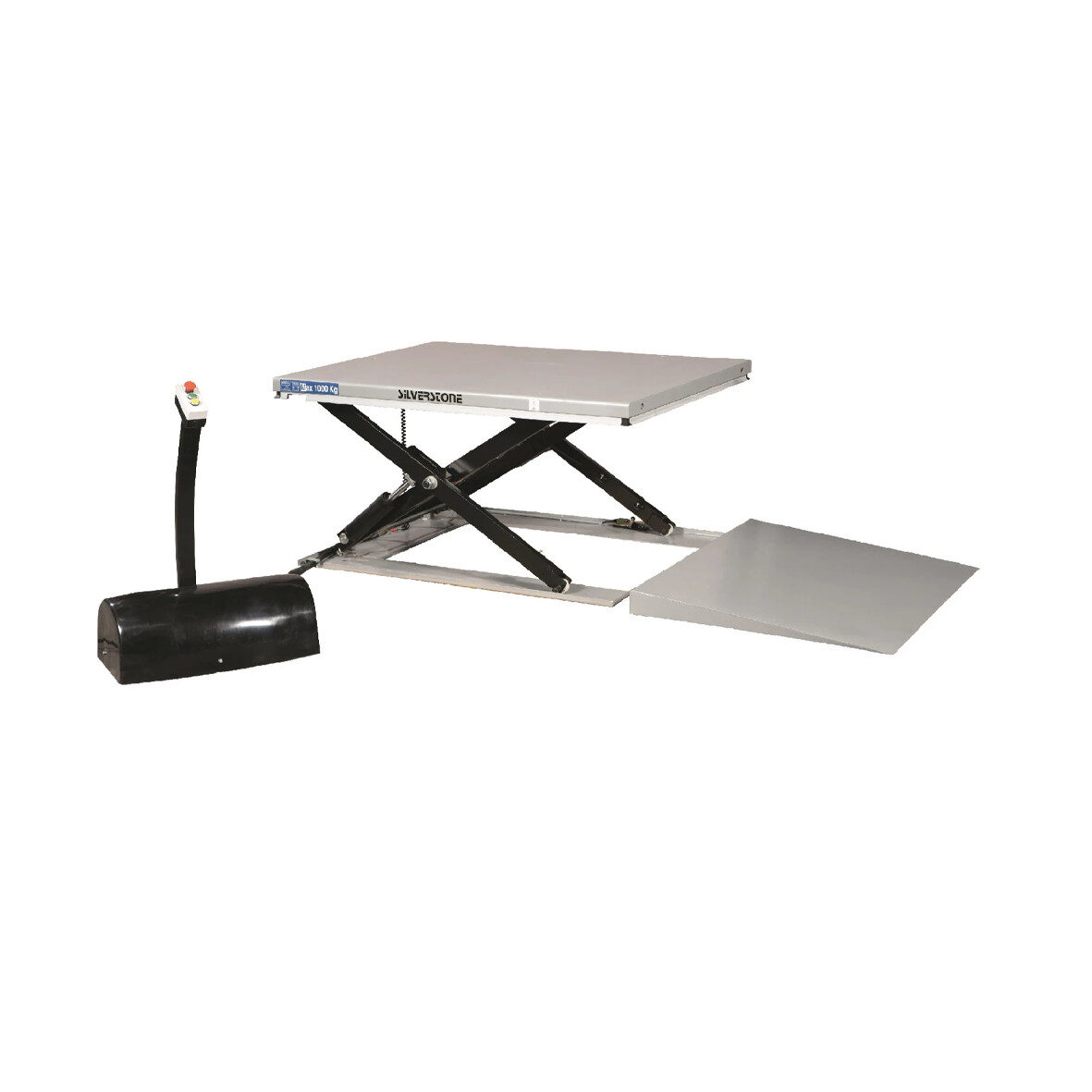 Statiske elektro-hydrauliske løftbord er spesiallaget for installasjon uten grop. Senket høyde er kun 85 mm. Bygget med solide stålplater for maksimal styrke og pålitelighet. Separat hydraulisk kraftpakke (IP54) som plasseres ved siden av løftbordet. Den flyttbare rampen er inkludert. Kabel for 3-fase tilkobling 380V/16 Ah.