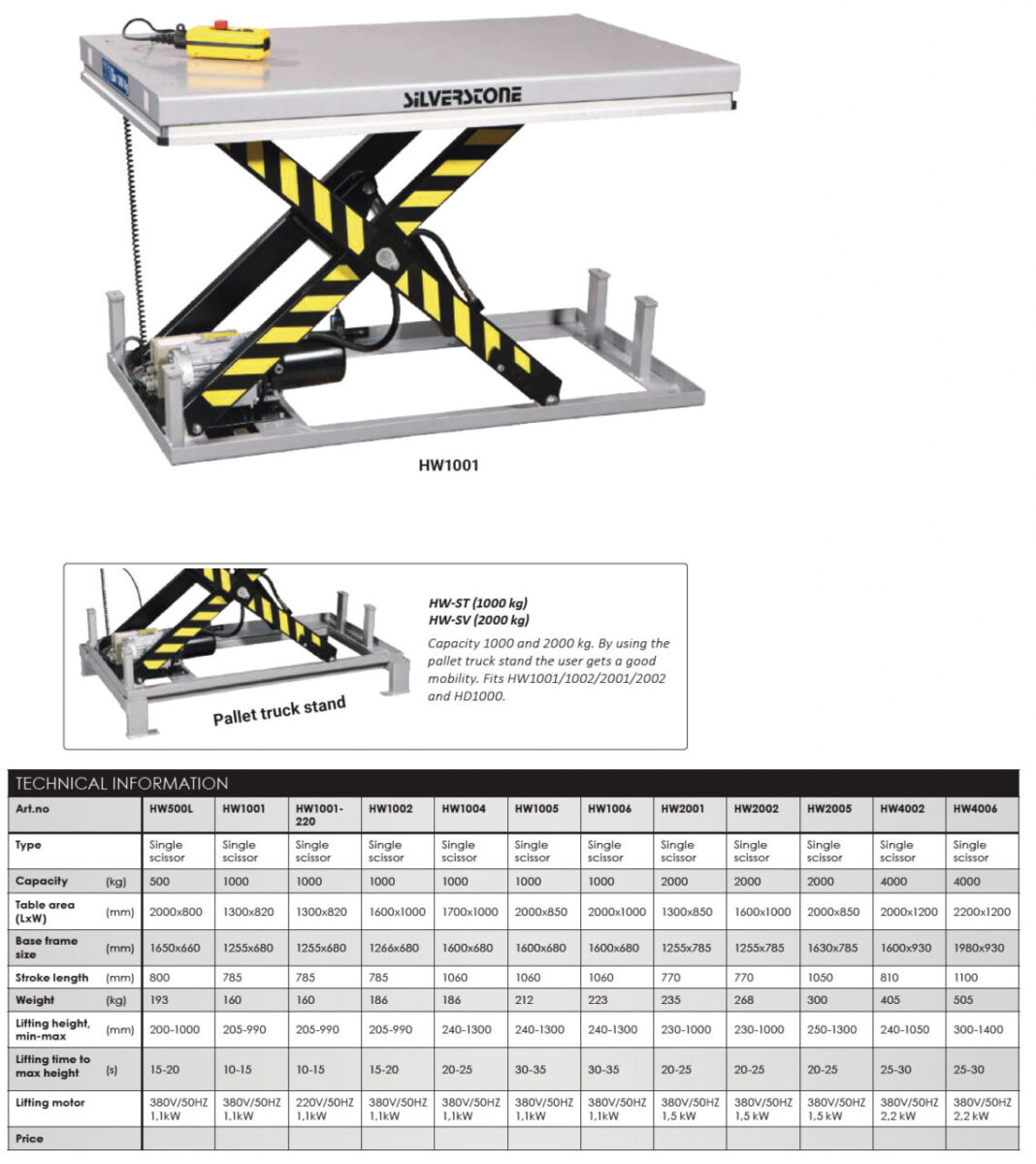 Ved å bruke palletruckstativet får brukeren mulighet til og enkelt flytte løftebordet i verkstedet Passer til HW1001, HW1002 og HD1000. Pallevognstativ Kapasitet: 1000 kg