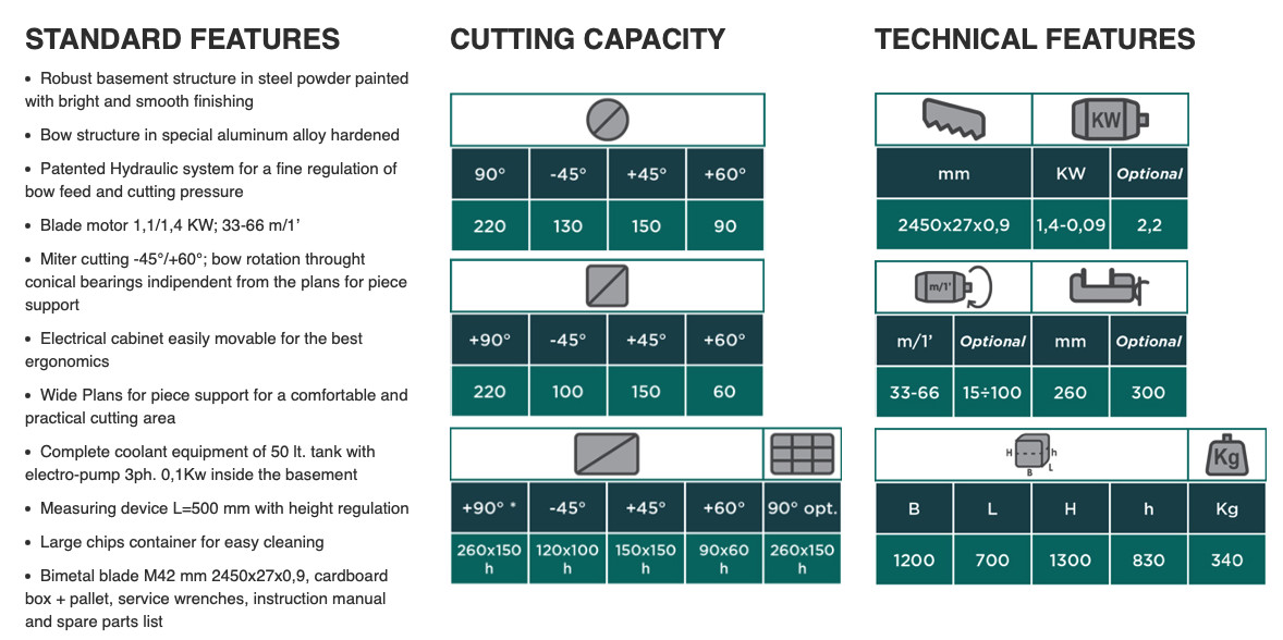 Den mest kompakte hydrauliske båndsagen. Designet av høy robusthet. Enkel i bruk for rask produksjon.