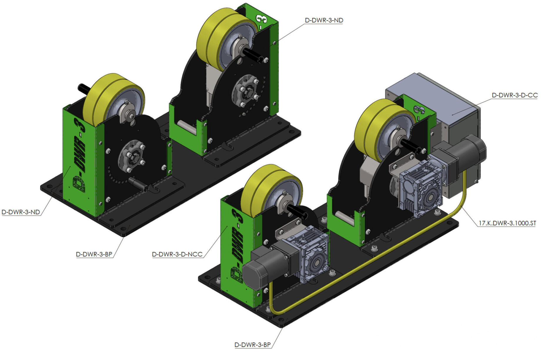 Rullebukker med 3000 kg maks kapasitet som kan brukes med baseplate, da kan du ha oppi rør maks Ø1500mm.