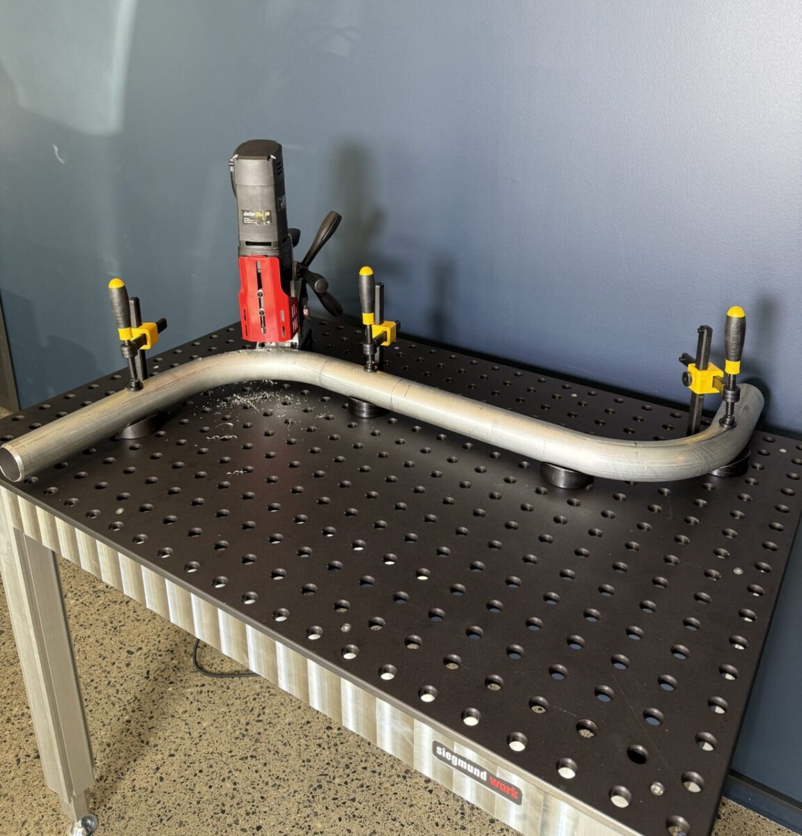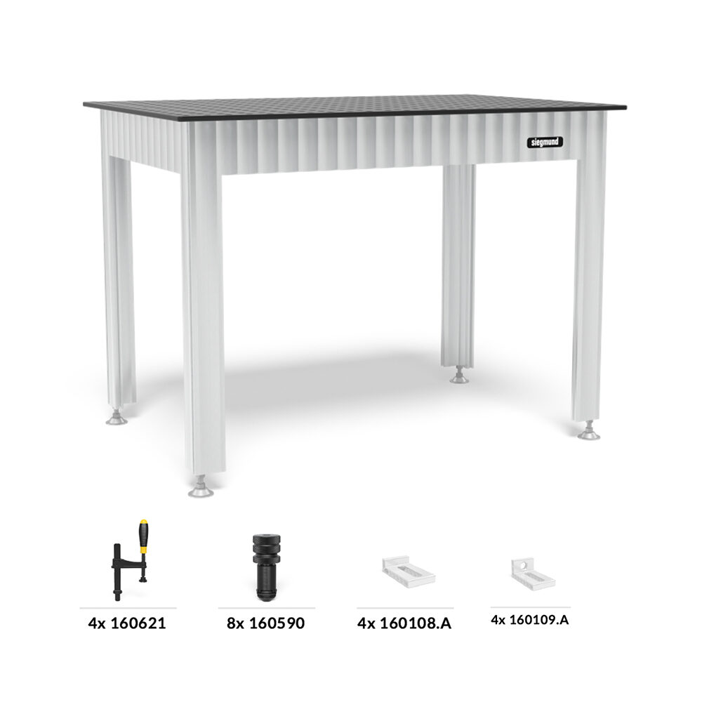 En fantastisk nyhet fra verdens største sveisebord produsent Siegmund i Tyskland. Første bilde viser hva som er inkl i pakken, de andre bildene er eksempler på bruk, disse bildene inneholder tilbehør som ikke er inkl i leveringen.