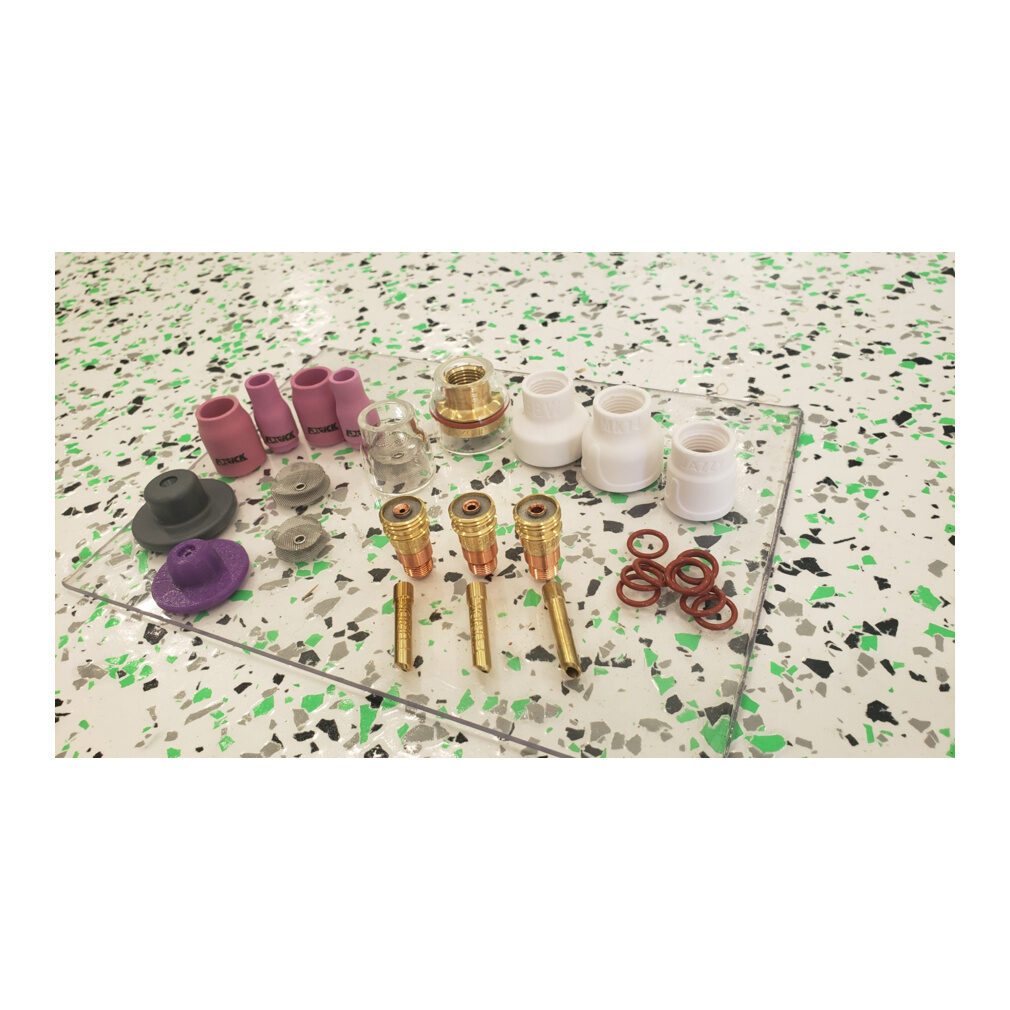 All the essential consumables for your SR17 and SR26 AC/DC TIG torch in one box: