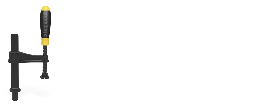 Du kan og bruke vanlig standard tvinger, men kan da ikke stramme for hardt. Om du bruker Basic Skrutvinge til arbeidsbenk, så har du lengre tapp som går gjennom hele alu skinnene og gir bedre feste.